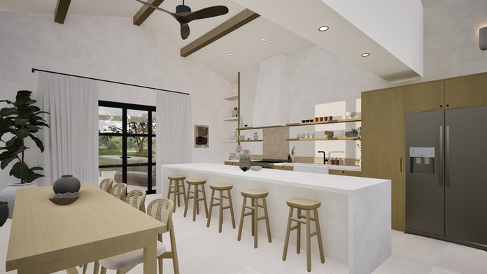 Une cuisine conviviale pratique et épurée, avec îlot central et assises
